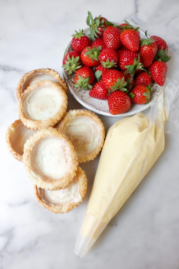 Eén van de meest verkochte gebakjes in de vroege zomer is volgens mij de aardbeienschelp. Zodra de aardbeien echt goed in het seizoen zijn, en dus op zijn lekkerst, is het tijd om zelf ook eens aan de slag te gaan. Zo moeilijk is het namelijk ook weer niet om zelf aardbeien schelpen met roomvulling te maken.